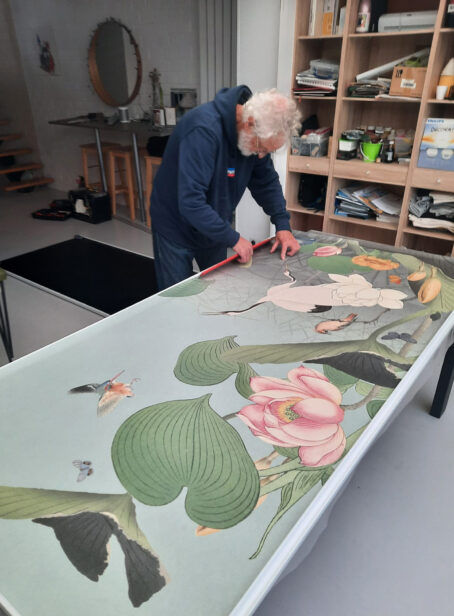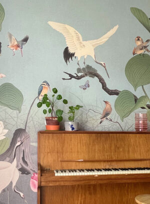 Maar eerst wordt er net zolang met de vogels, bladeren en andere dieren geschoven totdat het ontwerp perfect op jouw muur past. Of er nou een raam in zit, de muur is supersmal of juist heel breed, dat maakt niet uit.